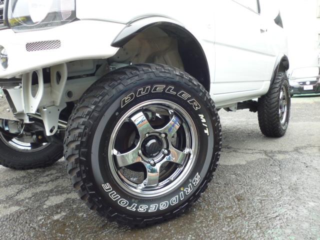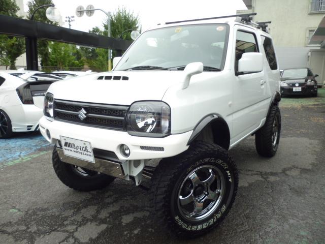 ピークレスポンス3.5インチリフトアップ&センターW出しマフラー・クライムマックスバンパー・希少のXC・5速!!ソリッドホワイト・ワーククラッグS1J ジムニー専用ホイル5.5J+20 定価1本¥43200 只今製作中の弊社デモカーにも装着予定です・BSデューラーM/T225/75R16