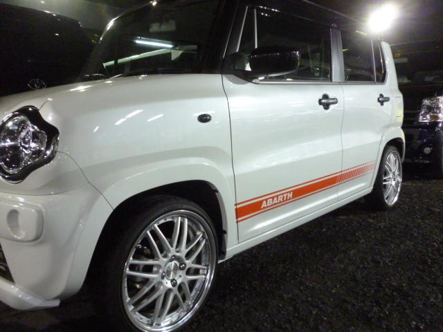 お客様よりサイドストライプ持込にて、貼り付けのみ行いました。 フィアット・アバルト用?の様ですが、違和感無く貼れました。
